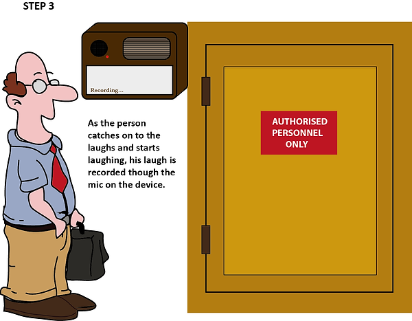 As stated above, laughter is contagious like yawning. Using this base idea, we induce a person to laugh through the sounds of others’ laughter. A sample of the user’s laughter is then recorded and analysed to find the closest matching laughter signature. This signature establishes singularity and can then be used as a pass code.